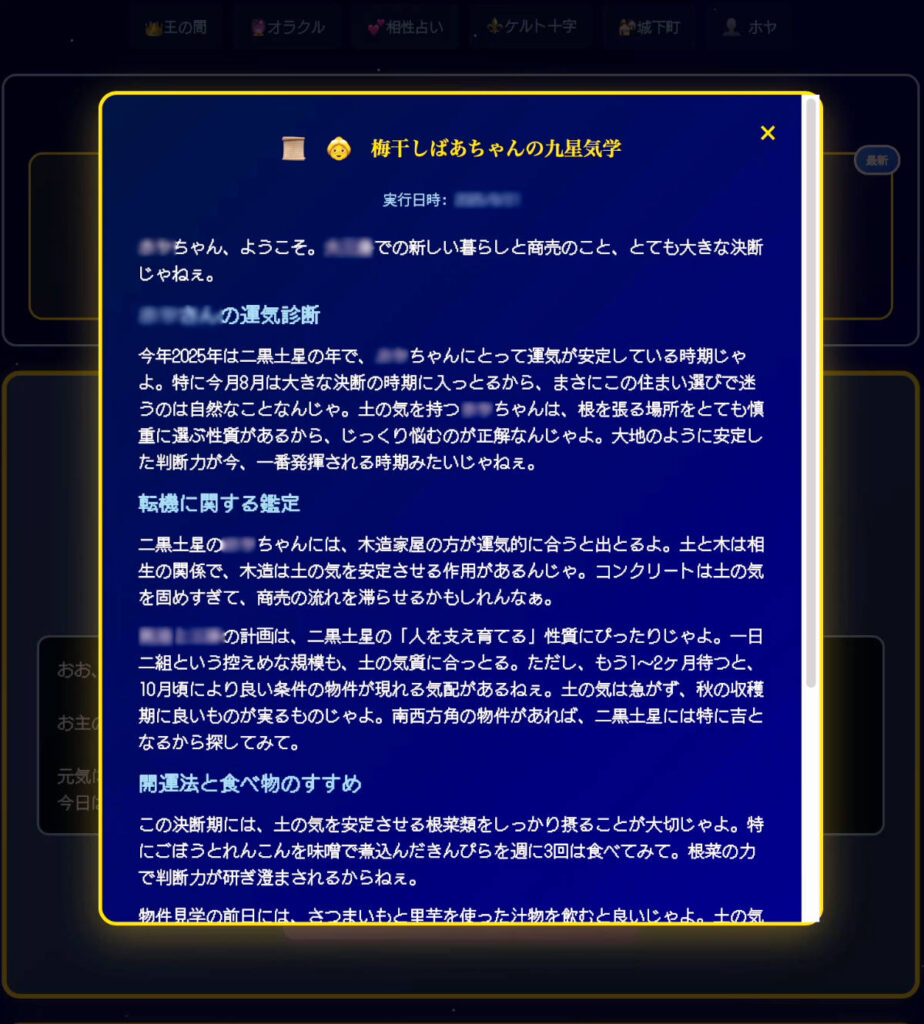 ステップ3: 結果を受け取る あなた専用の吉方位アドバイスが表示されます。